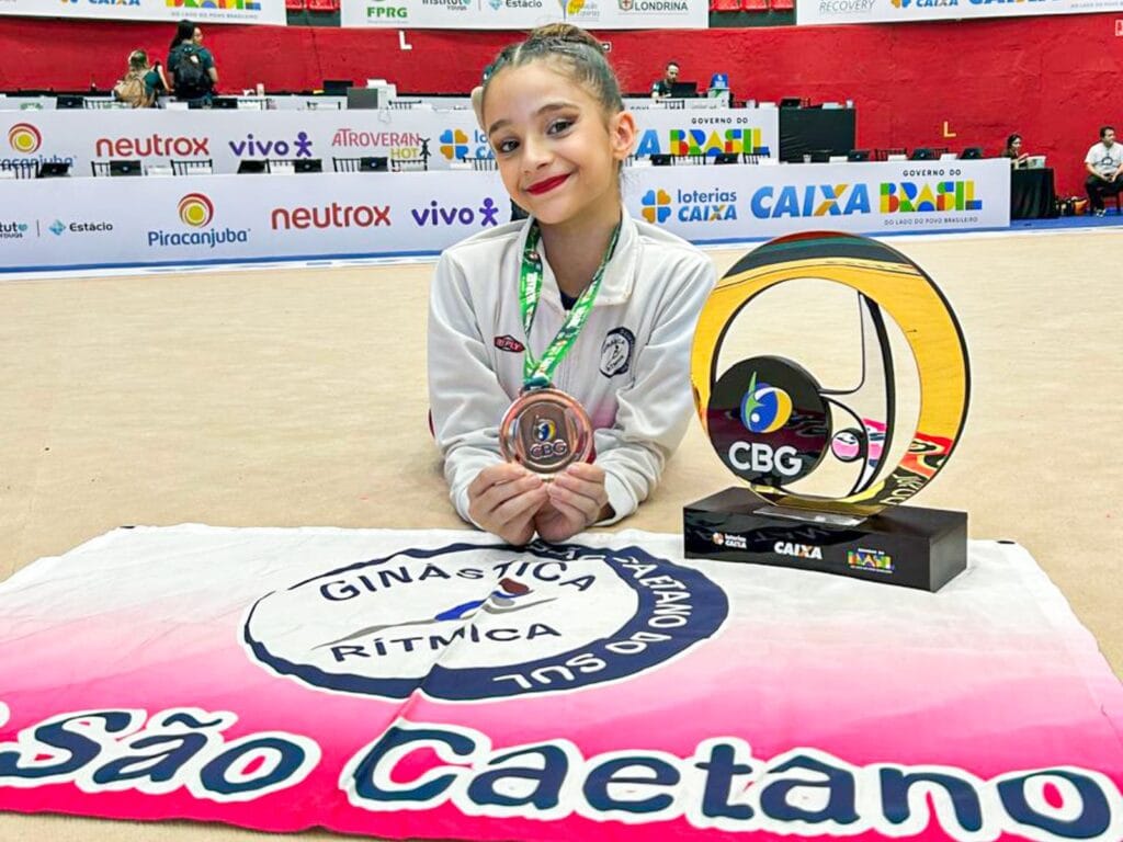 A ginástica rítmica de São Caetano do Sul no ABC Paulista conquistou feito inédito ao ficar em terceiro lugar no Campeonato Brasileiro Infantil, realizado entre os dias 29 de setembro e 5 de outubro, em Londrina (PR). Além deste feito, a ginasta Maria Clara Reis Osório conquistou a medalha de ouro no aparelho Fita e apareceu como destaque da competição.